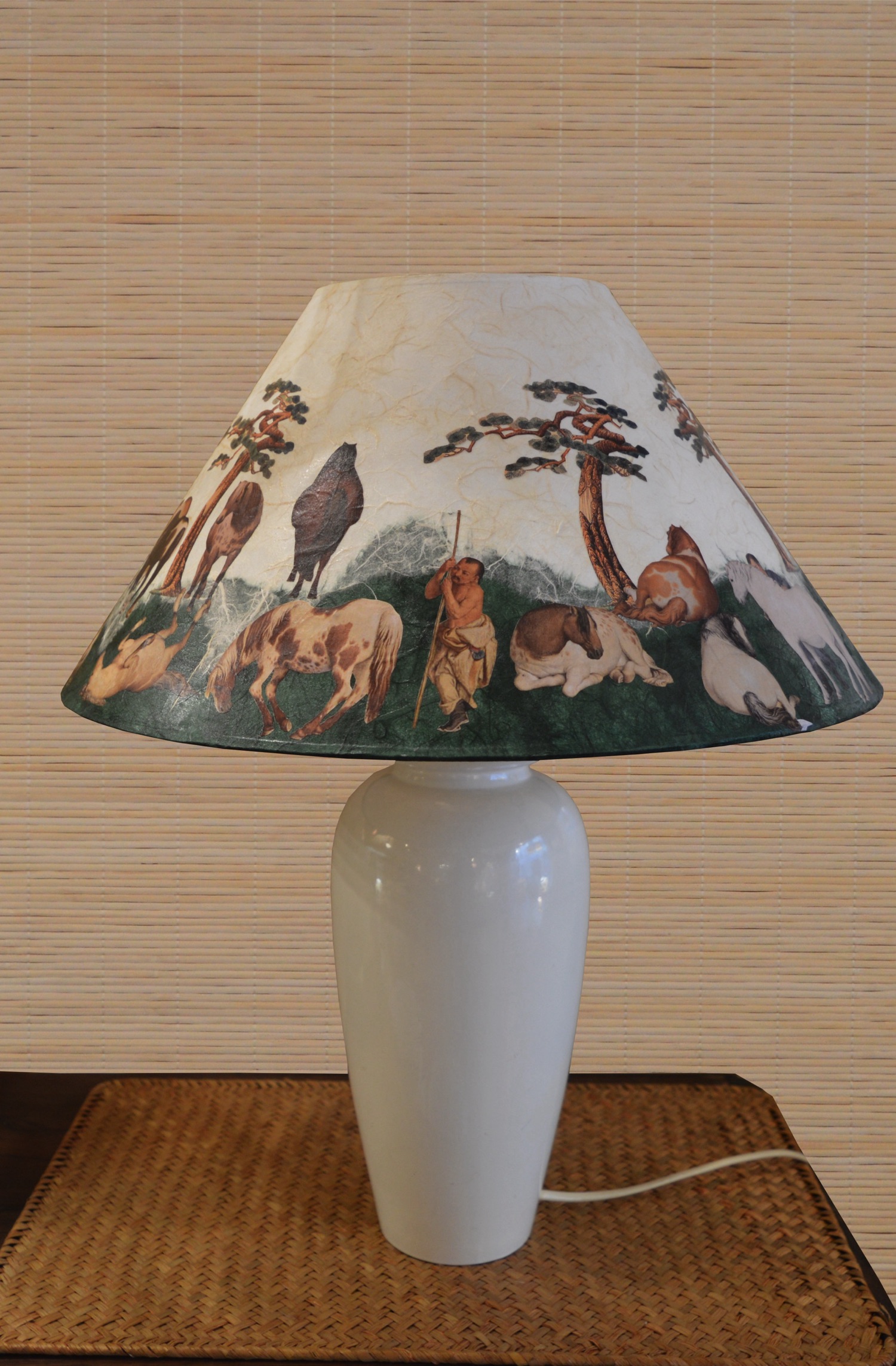 Abat-jour voyage en Chine : fresque de chevaux sauvages Imaginez une lumière douce qui évoque les vastes steppes chinoises, où des chevaux sauvages galopent librement sous un ciel infini. Cet...