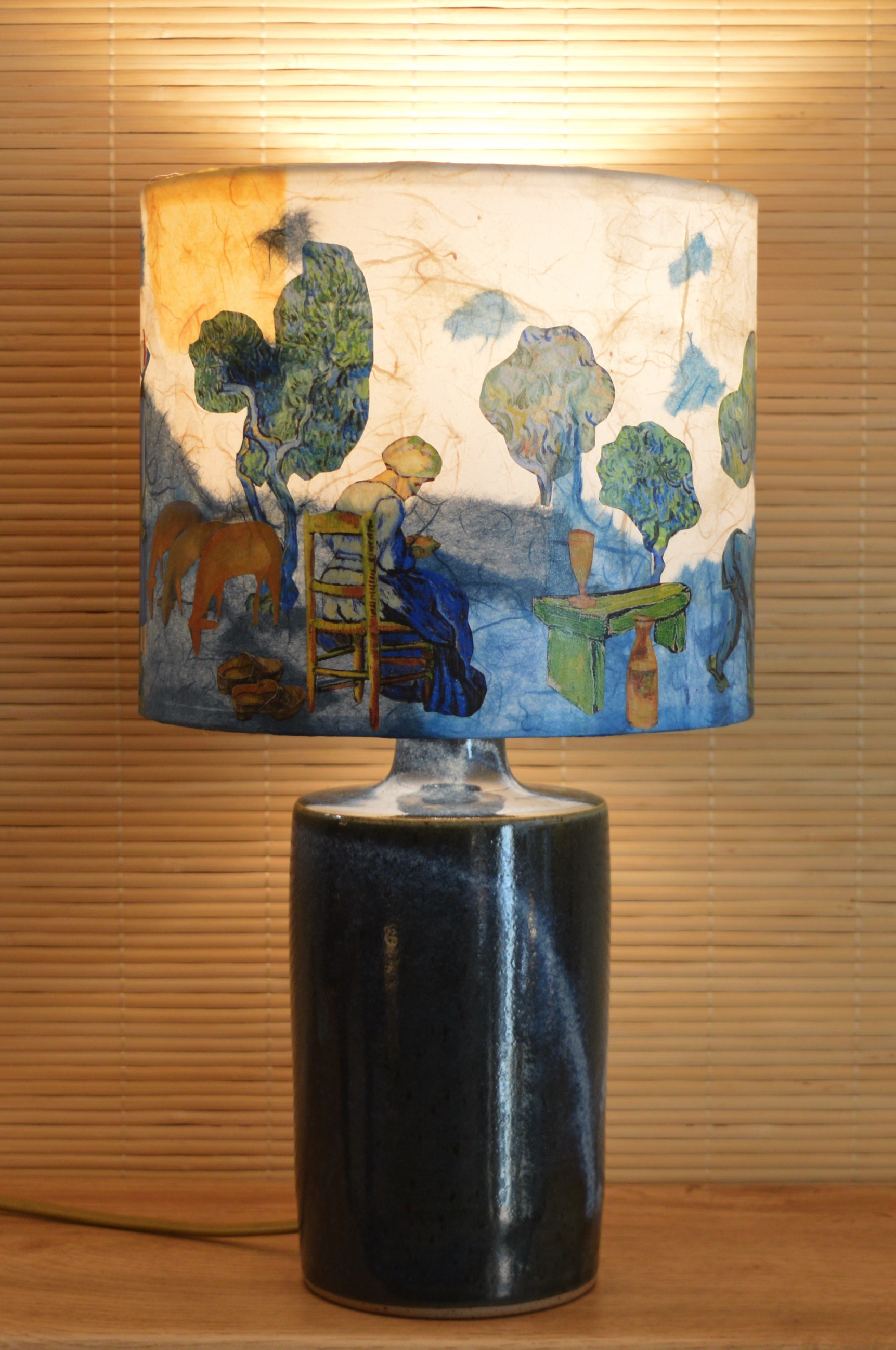 Ce dernier abat-jour de la collection Van Gogh, en forme de petit cylindre, capture une scène touchante de sérénité et de paix. Intitulé « Ensembles », il représente un couple de vieilles personnes...