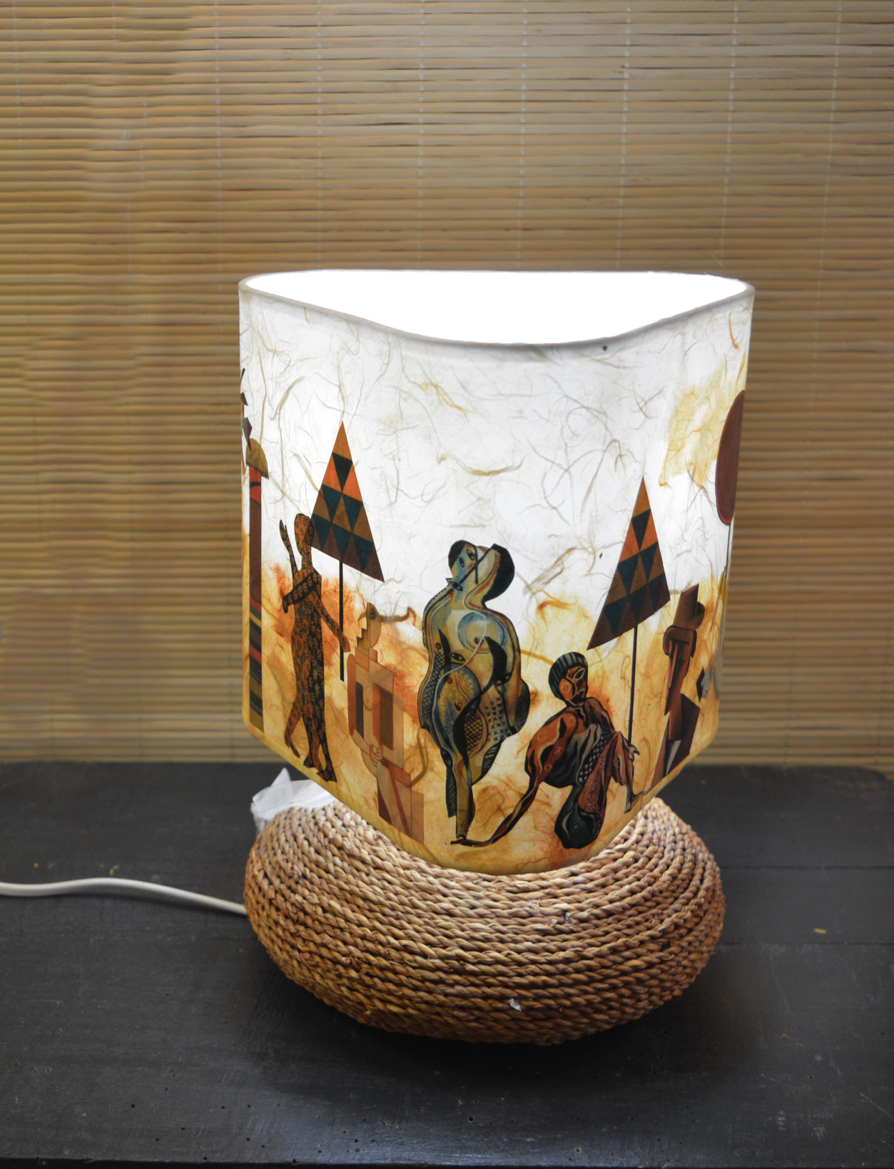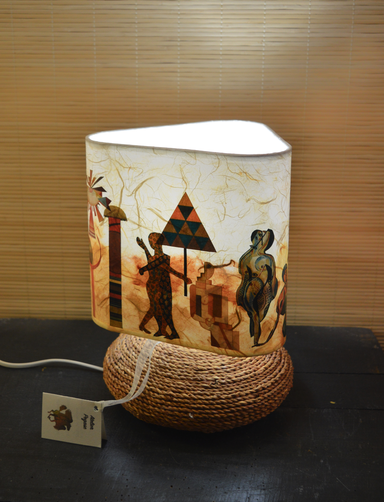 Cet abat-jour au design original, prenant la forme d'un triangle arrondi, apporte une touche unique à votre décoration intérieure. Avec ses couleurs d'automne allant des riches teintes d'ocre aux...