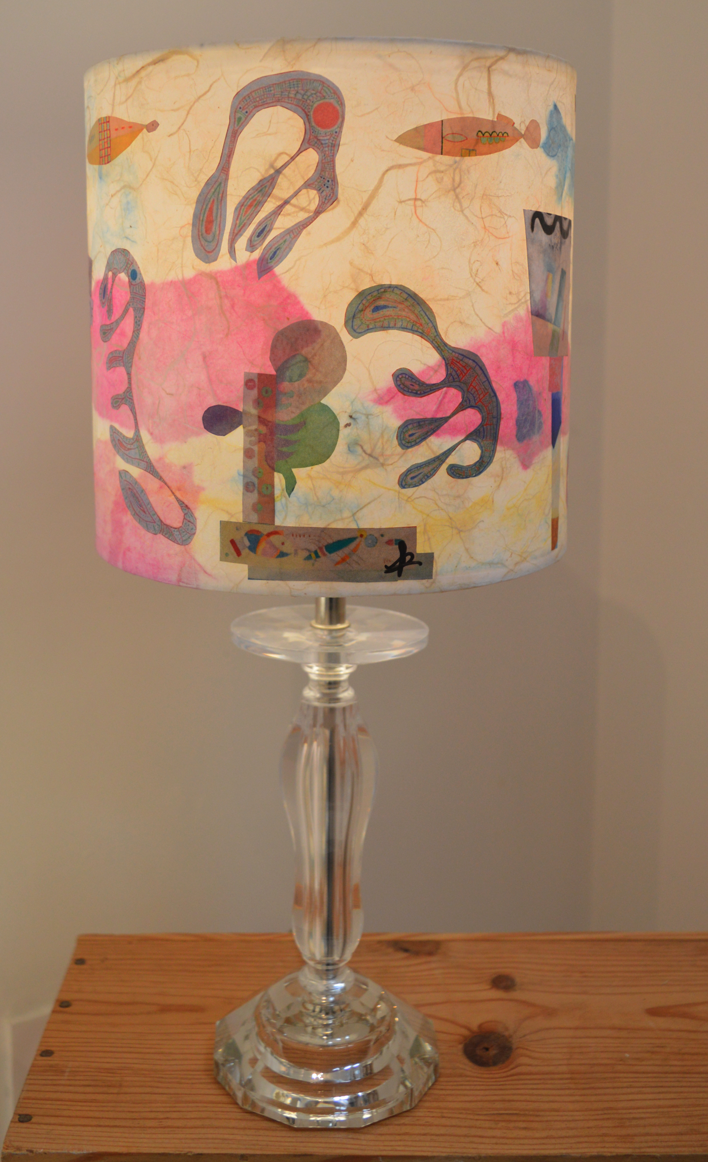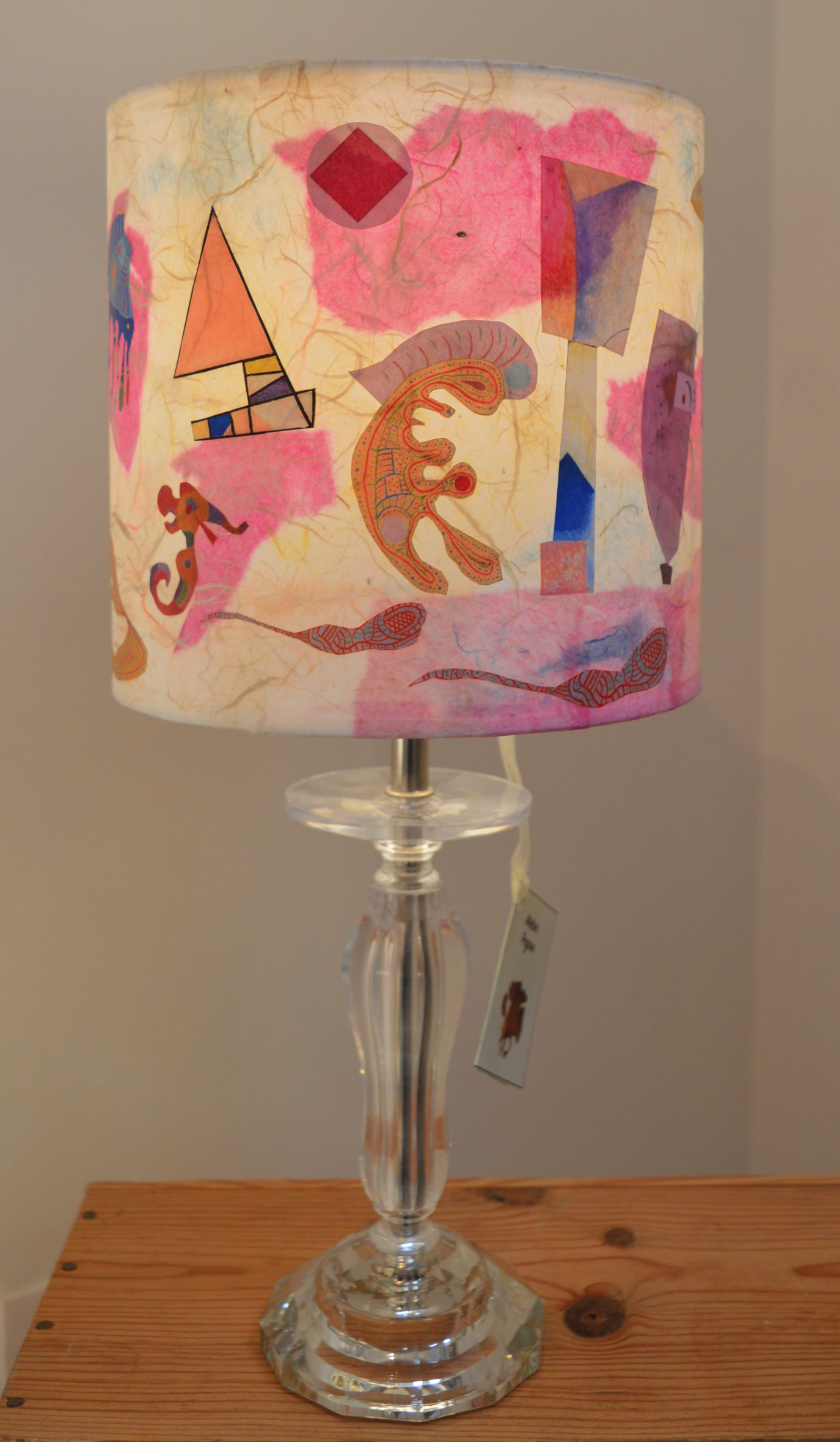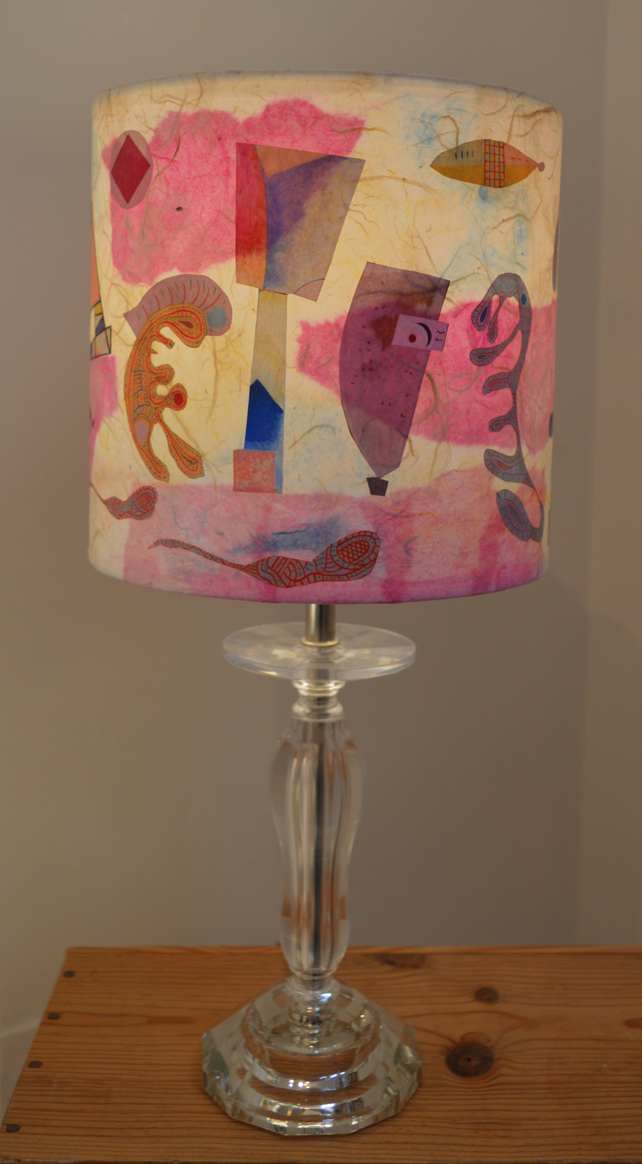 Abat-jour art abstrait fond marin rose Plongez dans une ambiance sereine et poétique avec cet abat-jour art abstrait, issu d'extrait de peintures de Kandinsky, aux accents de fond marin rose, mais...