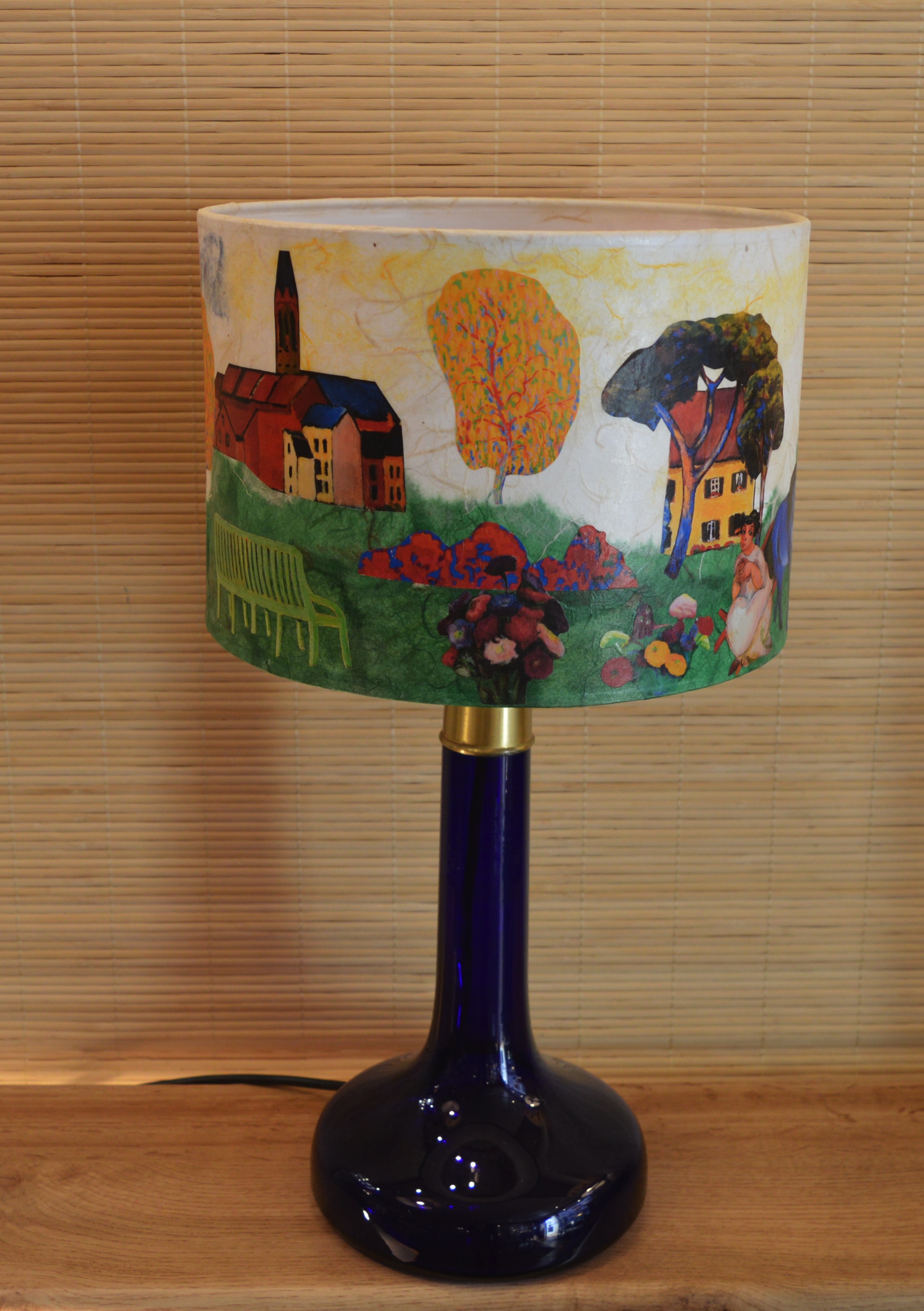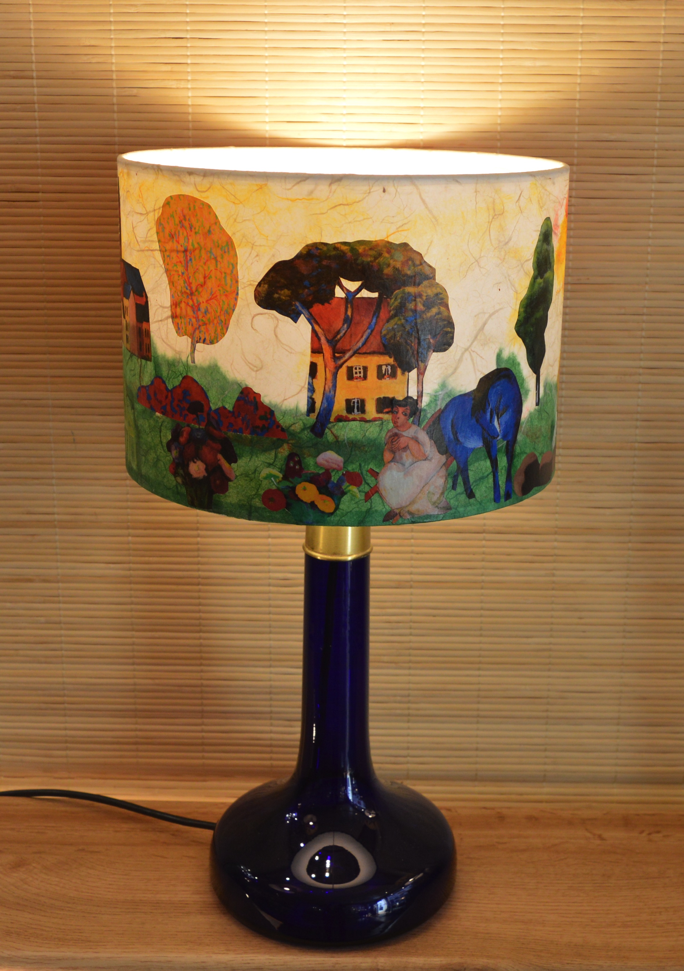 Cet abat-jour représentant le cheval bleu de Franz Marc évoque une harmonie visuelle, presque onirique, lorsqu'il est associé aux œuvres de Van Gogh et d'Edward Munch.