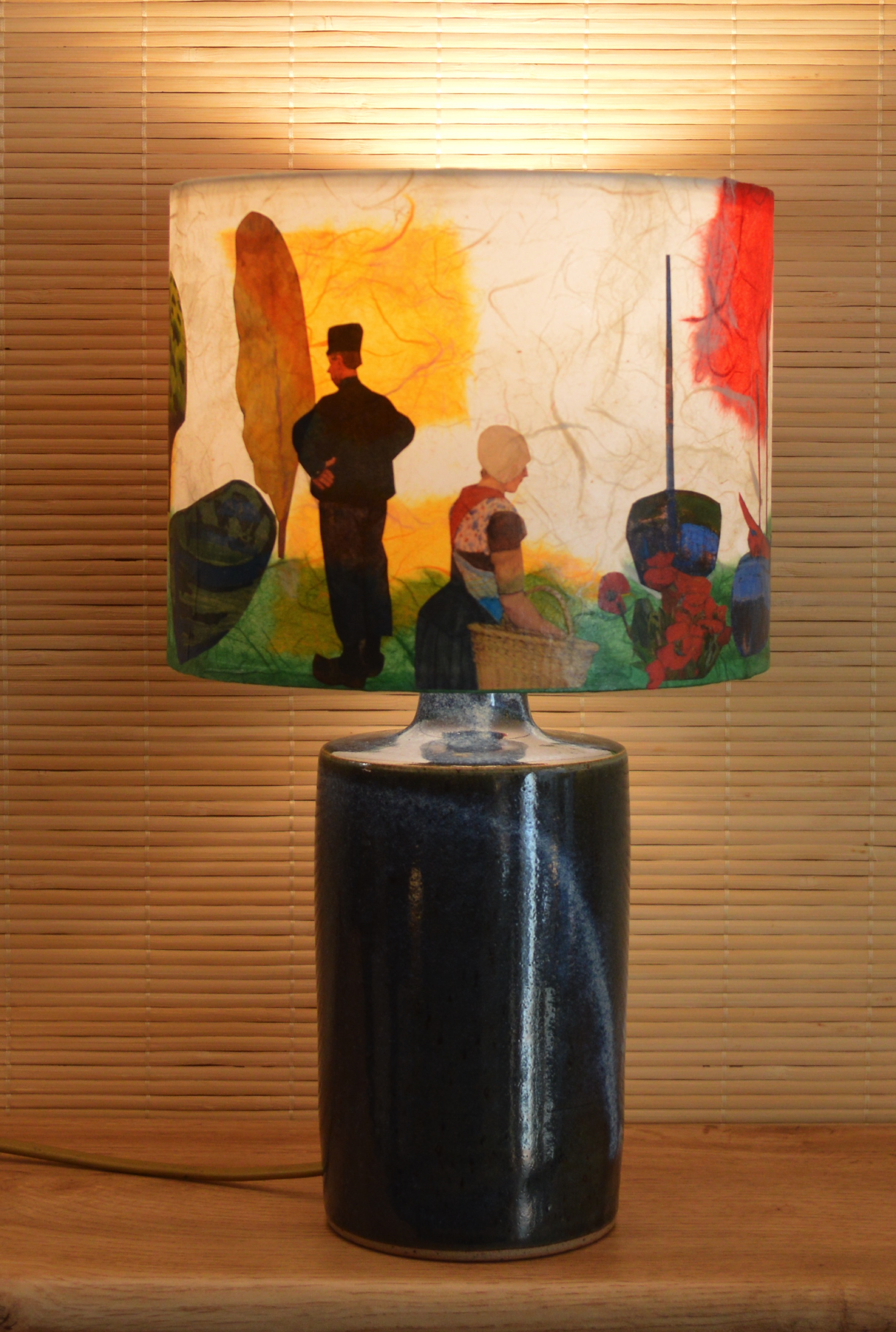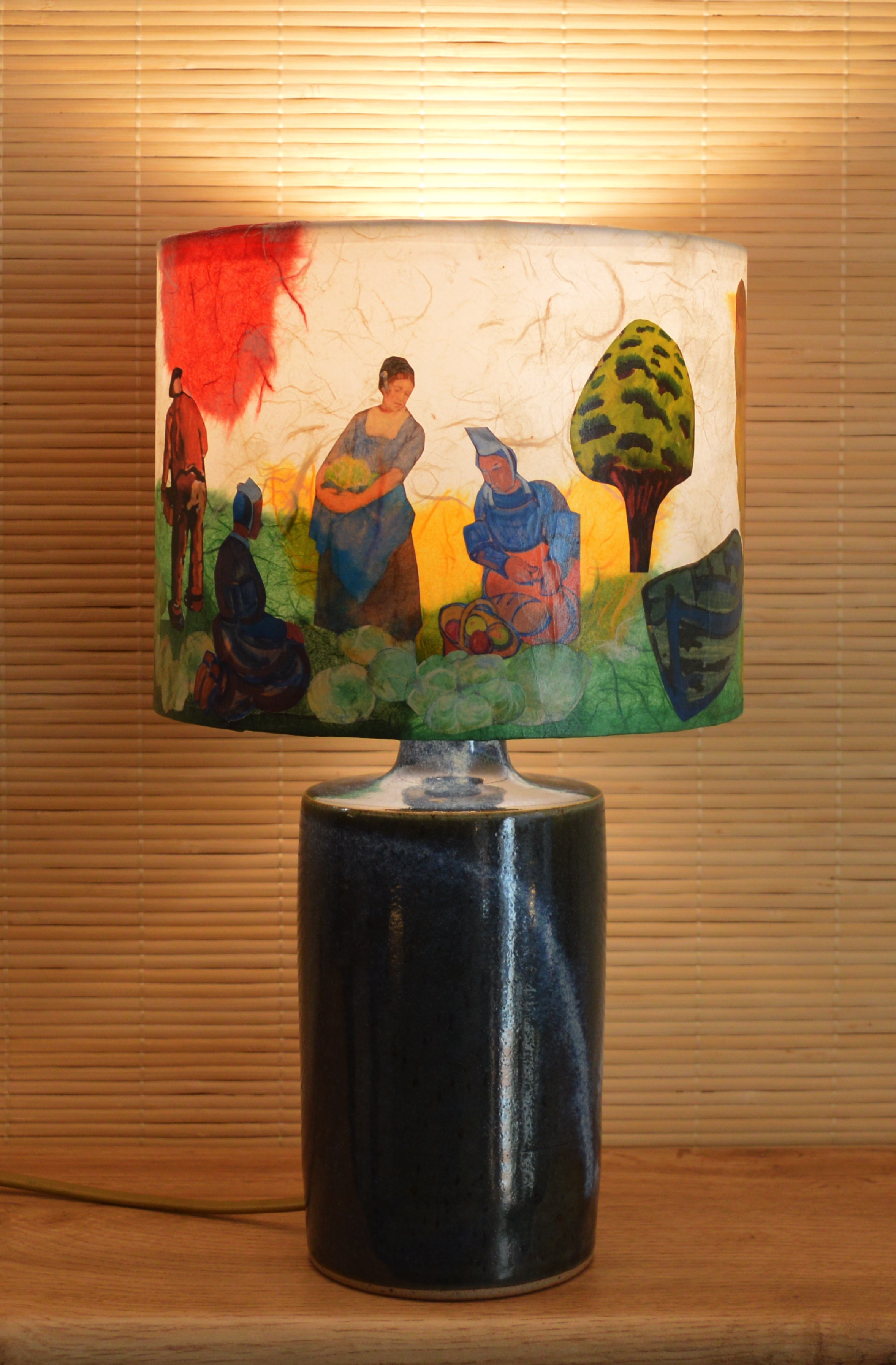 Parfait pour les amateurs d'art décoratif, cet abat-jour petit format s'intègre harmonieusement dans tous les espaces : salon cosy, chambre apaisante ou bureau créatif. Ses teintes vives – rouges passionnés, bleus océaniques et verts luxuriants – capturent l'essence des nabis, ces artistes qui ont célébré la Bretagne avec audace et poésie.