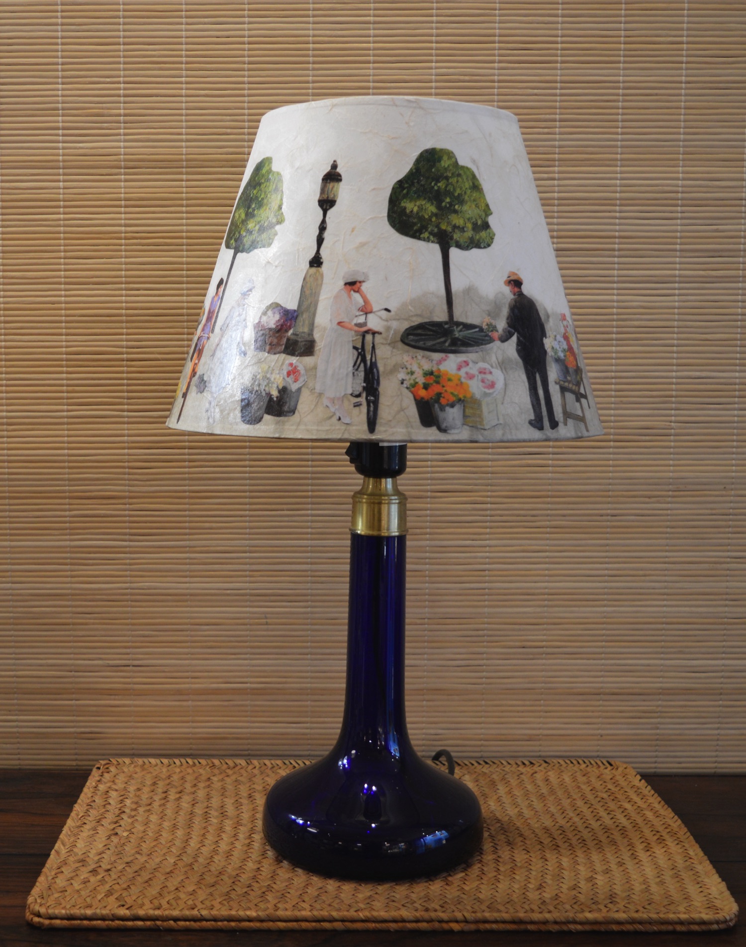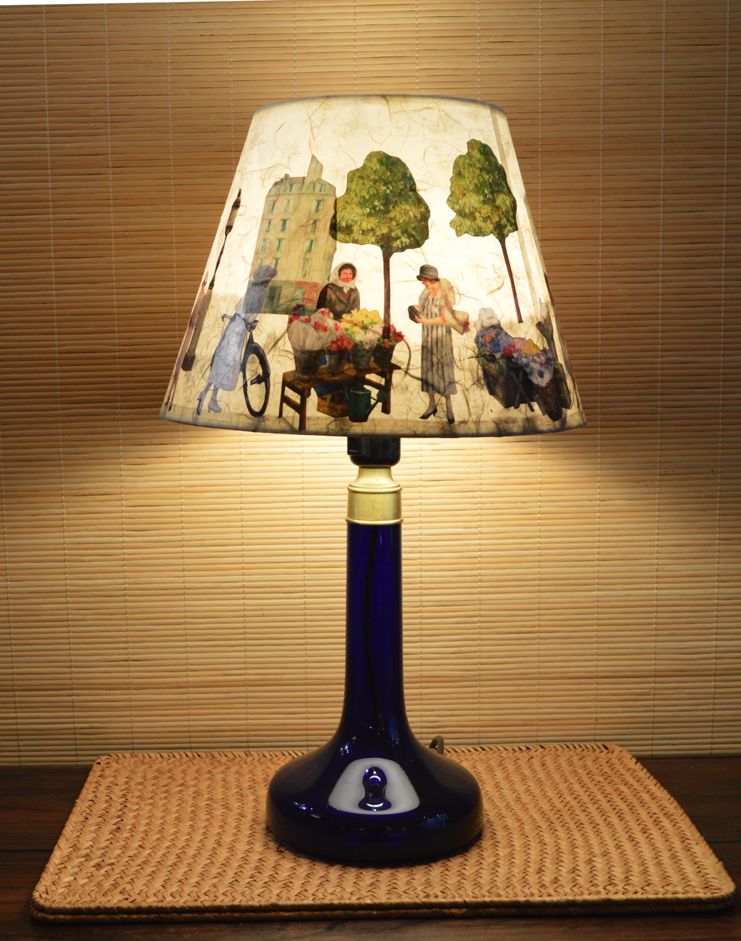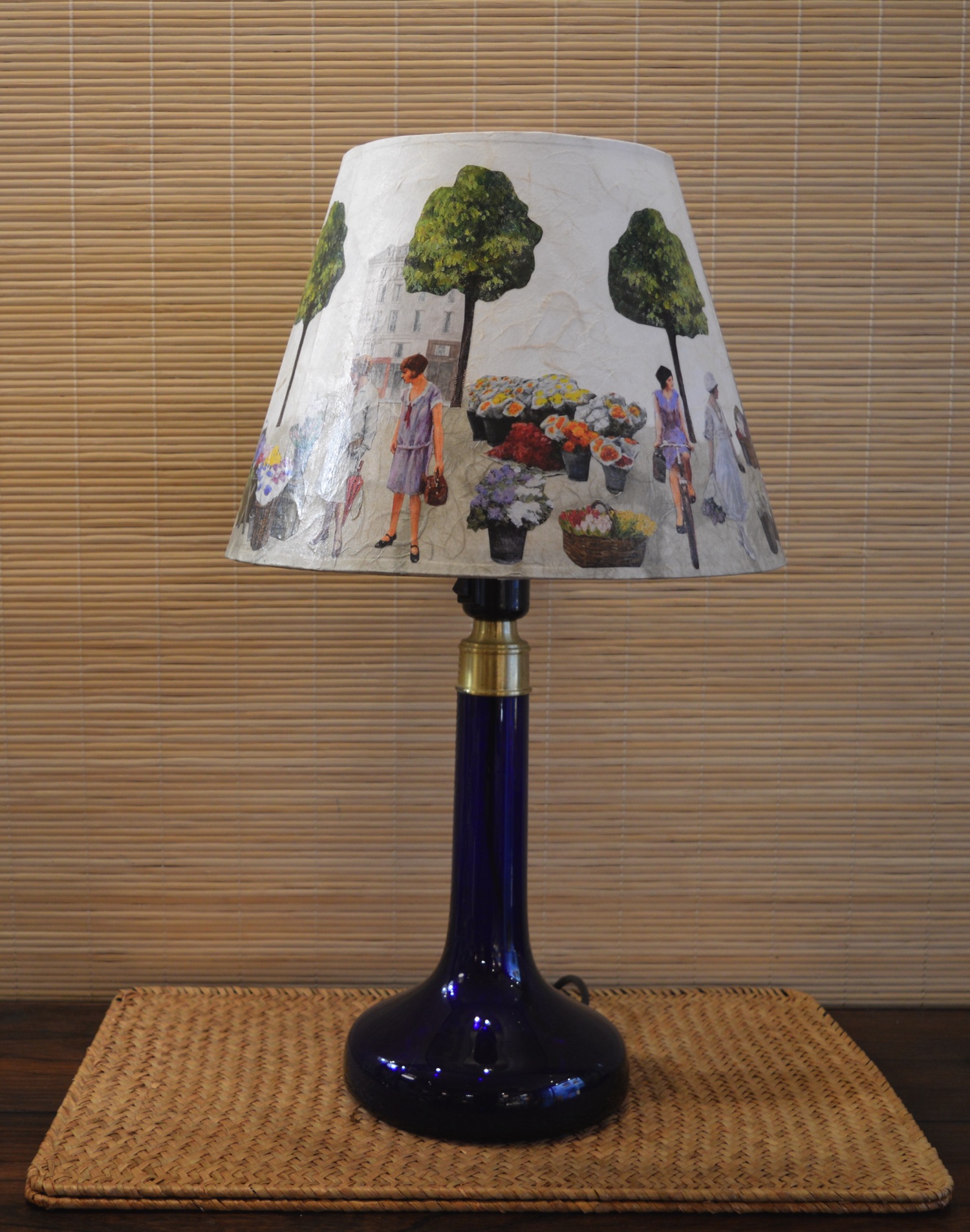 Plongez dans l'ambiance chaleureuse et nostalgique d'un marché aux fleurs des années 1920 avec cet abat-jour évasé, un jour de marché.