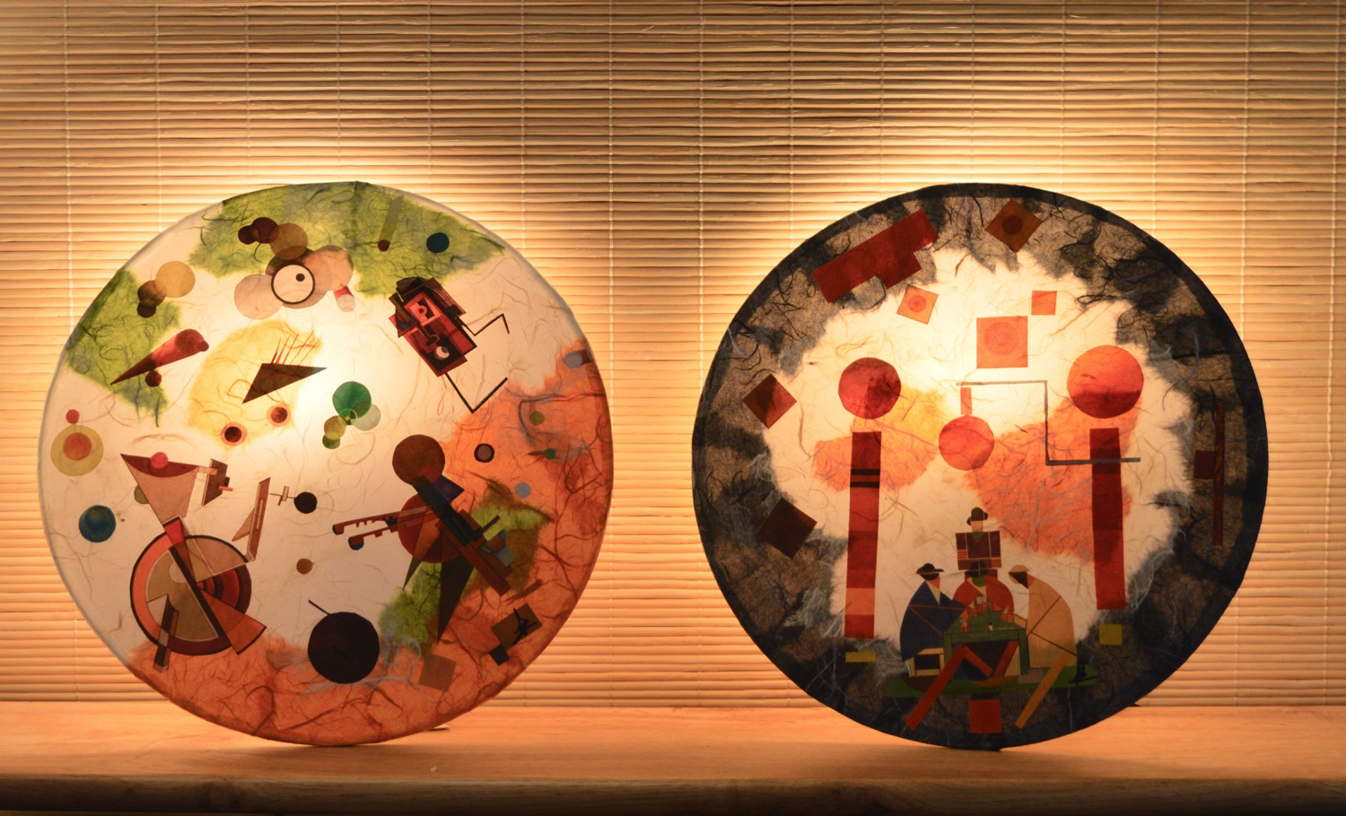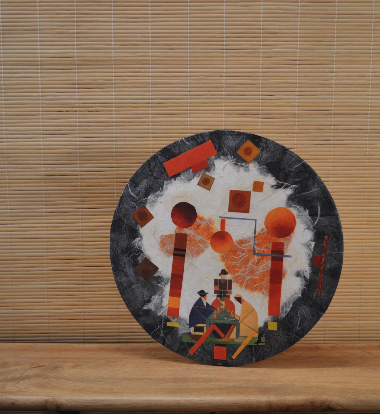 Les papiers de soies de pailles, (papier de riz) et fibres de mûrier utilisés pour le décor de fond sont de fabrications Allemande.